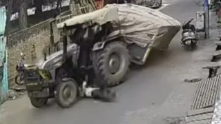 बजीरपुरा क्षेत्र में एक दुकान पर लगे सीसीटीवी में पूरा घटना रिकॉर्ड हुई है। इसमें दिख रहा है कि सड़क पर ट्रैक्टर काफी तेजी से चला आ रहा था। सामान से भरे ट्रैक्टर की ट्रॉली का पहिया अचानक धंस गया। इससे ट्रॉली पलटने से बच गई। वहीं ट्रैक्टर की ड्राइवर सीट के बराबर में बैठा व्यक्ति अगले दोनों पहियों के बीच सड़क पर गिरा। उसके सिर में चोट लगी, लेकिन खुद को संभालते हुए तुरंत पहिये के बीच में हट गया। वहीं ट्रॉली तिरछी हो गई और आसपास के लोग भी एकत्रित हो गए।