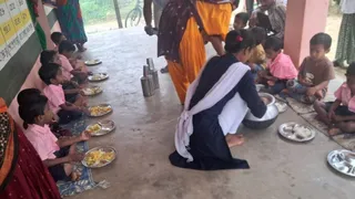 जानकारी के अनुसार, केंद्र में नामांकित 20 बच्चों में से 16 बच्चे अपने माता-पिता के साथ आंगनबाड़ी पहुंचे। सहायिका शर्मिष्ठा सेठी ने बच्चों को रागी के लड्डू खिलाए, इसके बाद चावल और दालमा (सब्जी की करी) बनाकर परोसी।
