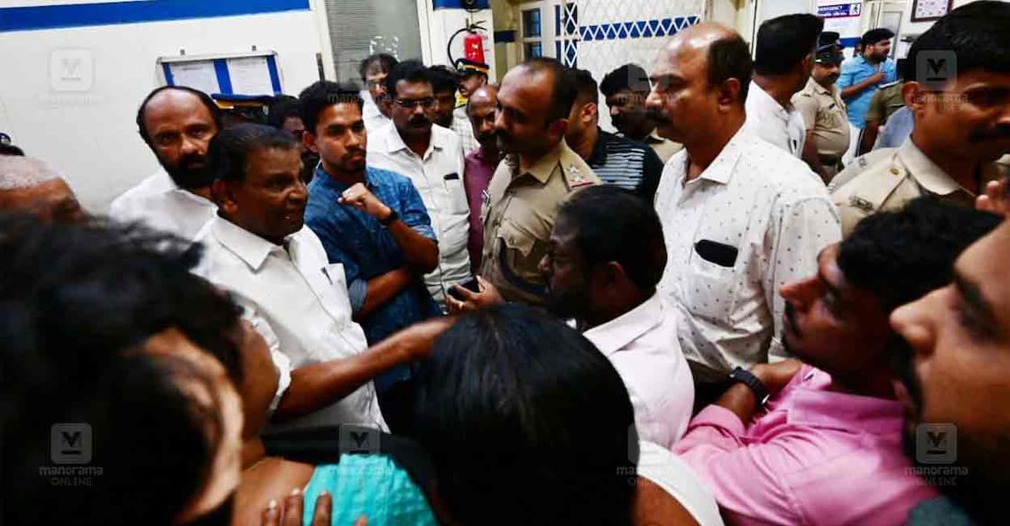 Protest: The Congress protest against the police\“s move to remand Youth Congress workers who showed black flags to the Chief Minister. Under the leadership of Thiruvanchoor Radhakrishnan, MLA, Congress workers besieged the Kottayam East Police Station.