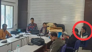 घूसखोर अकाउंटेंट (लाल घेरे में) के खिलाफ कार्रवाई करती ईओडब्ल्यू की टीम।
