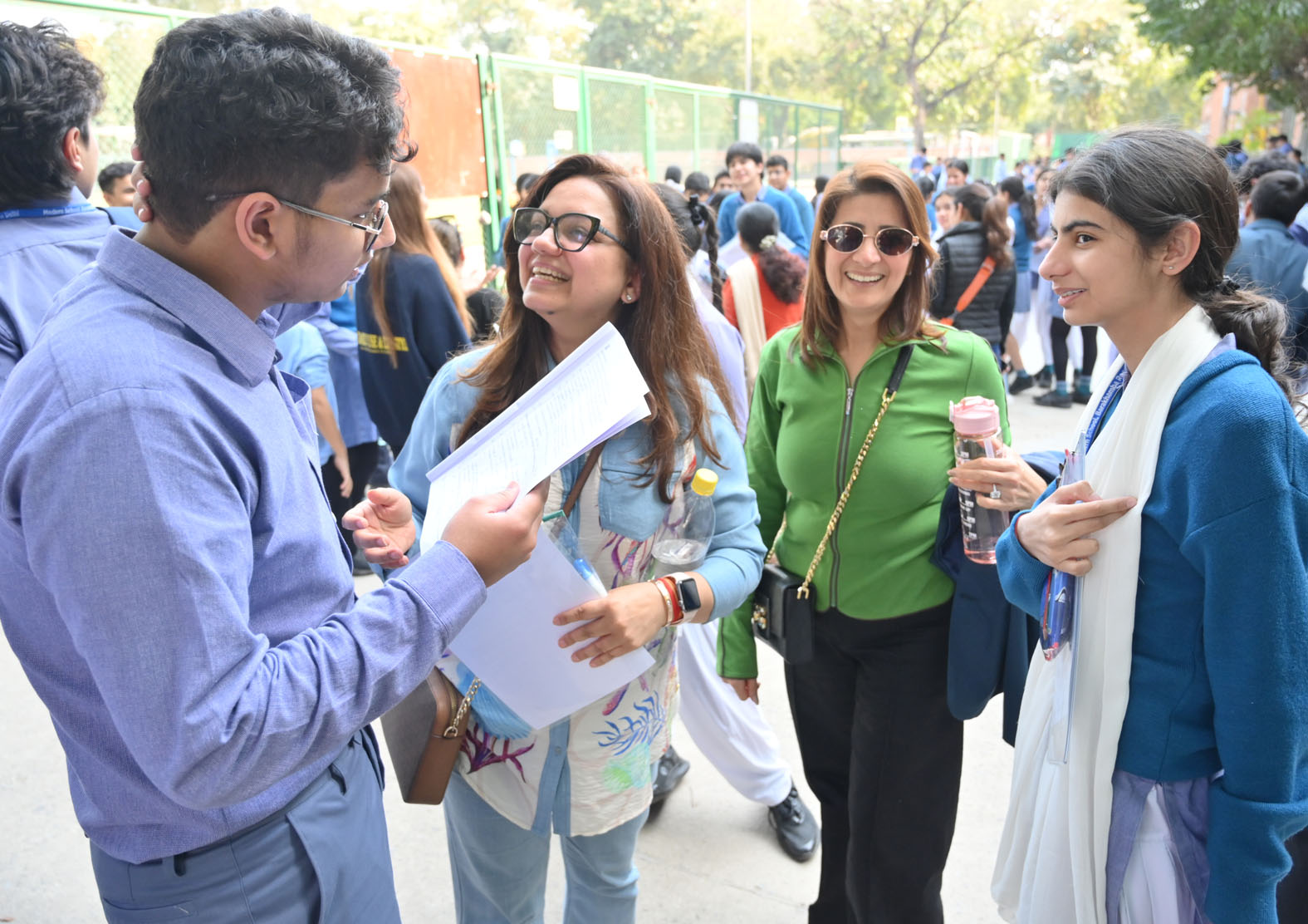 केंद्र से सीबीएसई बोर्ड की गणित की दसवीं की परीक्षा देने के बाद स्वजन से परिचर्चा करता छात्र। चंद्र प्रकाश मिश्र