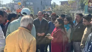 नगर निगम की ओर से अतिक्रमण के विरुद्ध चलाए जा रहे अभियान के दौरान विरोध करने वालों को समझाती नगर आयुक्त नमामी बंसल।