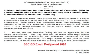 SSC GD Exam Postponed 2026: एसएससी जीडी कॉन्स्टेबल भर्ती परीक्षा स्थगित, नई डेट्स की घोषणा जल्द