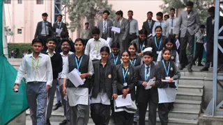 परीक्षा देकर आते परिक्षार्थी के एल इंटरनेशनल स्कूल मे ---जागरण
