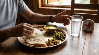 - अगर खाना खाते समय गला सूख रहा हो या मिर्च लग रही हो, तो आप एक-दो घूंट गुनगुना पानी या छाछ ले सकते हैं।