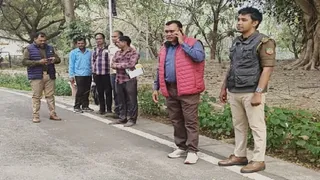 प्रयागराज के झूंसी में छतनाग में तेंदुआ देखे जाने की सूचना पर एचआरआइ में पहुंची वन विभाग की टीम। जागरण