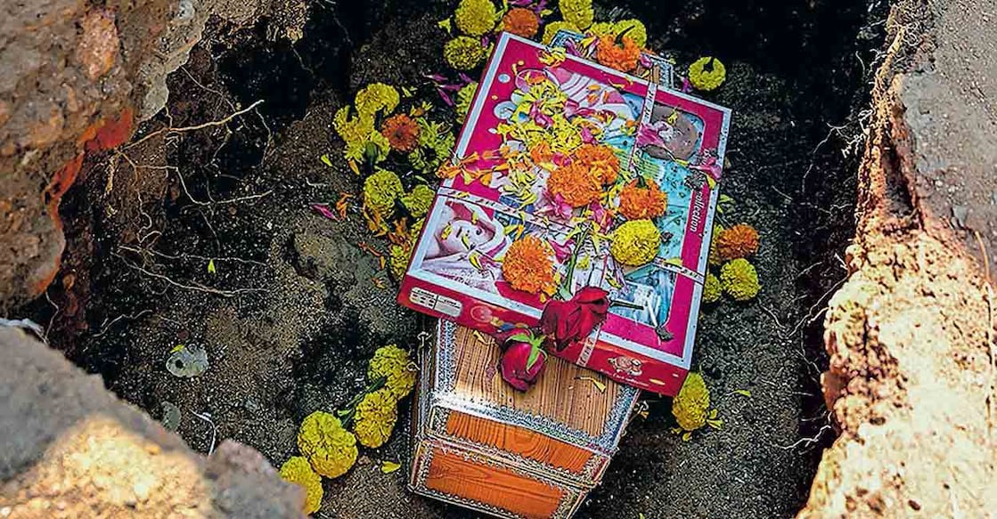 പാലോട് ∙ പുറംലോകം കാണാതെ ഗർഭസ്ഥ ശിശു നിശ്ശബ്ദതയുടെ ലോകത്തേക്കു യാത്രയായി. നെടുമങ്ങാട് ജില്ലാ ആശുപത്രിയിൽ പ്രസവ ശസ്ത്രക്രിയയ്ക്കിടെ മരിച്ച ഗർഭസ്ഥ ശിശുവിനെ പിതാവിന്റെ വീടായ പെരിങ്ങമ്മല സെന്റ്മേരീസ് മേക്കുംകര പുത്തൻവീട്ടിൽ ഇന്നലെ അടക്കം ചെയ്തു. വീടിനോടു ചേർന്നാണു കുഞ്ഞു പെട്ടിയിൽ അടക്കം ചെയ്തത്. പോസ്റ്റുമോർട്ടത്തിന് ശേഷം ഉച്ചയോടെ വീട്ടിലെത്തിച്ച കുഞ്ഞിനെ ഒരു നോക്കു കാണാൻ മാതാവ് ര‍ഞ്ജന കൃഷ്ണനോ പിതാവ് ബിനിൽ മനോഹറിനോ ശേഷിയുണ്ടായിരുന്നില്ല.  കുഴിമാടത്തിനു മുകളിൽ  പൂക്കൾ വിതറി ബന്ധുക്കൾ ശിശുവിന് ആദരാഞ്ജലികൾ അർപ്പിച്ചു.
