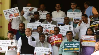 शुक्रवार को भी विपक्षी दलों ने सदन के बाहर जोरदार प्रदर्शन किया। राष्ट्रीय जनता दल (राजद) के विधायक विधानसभा पोर्टिको में तख्तियां लेकर जुटे। हाथों में लिखे नारों के जरिए सरकार के खिलाफ विरोध दर्ज कराया गया।