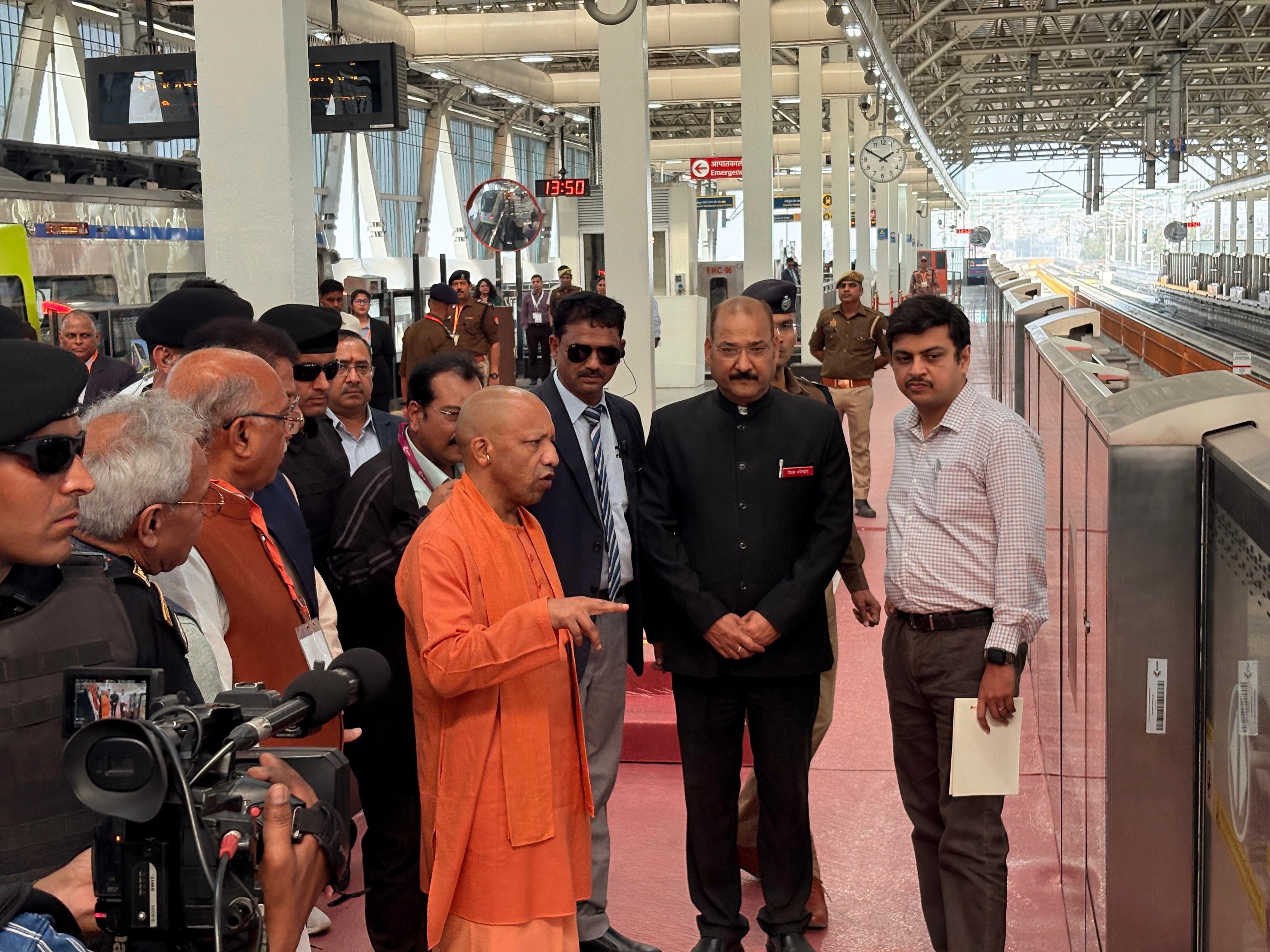 शताब्दीनगर स्टेशन पर सीएम ने वह मंच देखा जहां खड़े होकर रविवार को प्रधानमंत्री झंडी दिखाकर मेरठ मेट्रो और नमो भारत को रवाना करेंगे। यह स्थाव स्वचालित सीढ़ियों के पास है। प्लेटफार्म पर घूमकर उन्होंने वहां खुले स्टाल भी देखे। देश की पहली रीजनल रैपिड रेल सिस्टम को उन्होंने विश्वस्तरीय बताया तथा सराहना की। प्रधानमंत्री के स्वागत में पूरा स्टेशन सजाया गया था।