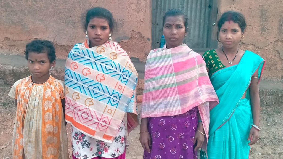 हांडिमारा गांव का युवक राजा गोप की मां व बहने। |