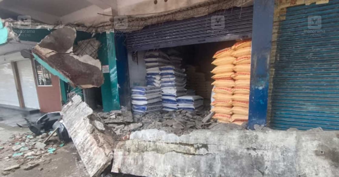 രാവിലെ ലോഡ് ഇറക്കിയ ശേഷം വിശ്രമിക്കുകയായിരുന്ന തൊഴിലാളികൾക്കു മുകളിലേക്കാണ് കെട്ടിടത്തിലെ കോൺക്രീറ്റ് സ്ലാബ് അടർന്നു വീണത്. സ്ലാബിനടിയിൽ രണ്ട് ഇരുചക്രവാഹനങ്ങളും കുടുങ്ങി. മുൻപ് പാസ്പോർട്ട് ഓഫിസ് പ്രവർത്തിച്ചിരുന്ന കെട്ടിടമാണിത്. താഴെനിലയുടെ സൺഷെയ്ഡാണ് തകർന്നു വീണത്. അരിപ്പൊടി ഉൾപ്പെടെയുളളവയുടെ ഗോഡൗണായാണ് കാലപ്പഴക്കമുള്ള ഈ കെട്ടിടം പ്രവർത്തിക്കുന്നത്.
