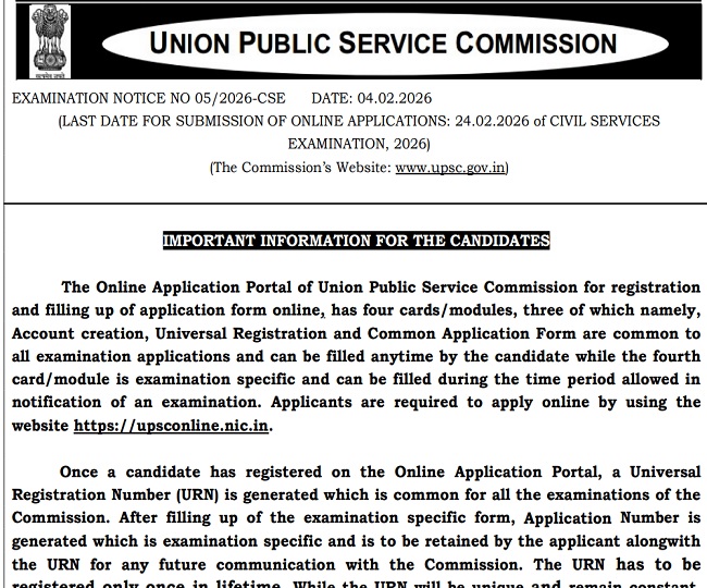 यह भी पढ़ें- UPSC CAPF AC 2026: यूपीएससी सीएपीएफ असिस्टेंट कमांडेंट भर्ती के लिए ऑनलाइन आवेदन स्टार्ट, 349 पदों पर होंगी नियुक्तियां |
