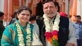 पत्नी के साथ कांग्रेस नेता महेंद्र सिंह चौहान।