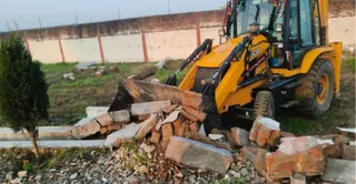 सिंहपुर में अवैध प्लाटिंग गिराता बैकहो लोडर। केडीए