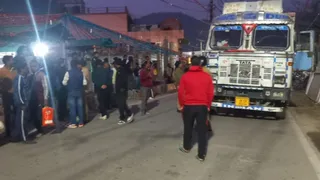 दुगड्डा में नगर पालिका कार्यालय के समीप सड़क पर खड़ा ट्रक जिसकी चपेट में आने से मासूम की मौत हुई।