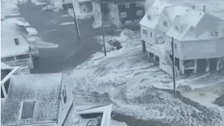 मैसाचुसेट्स में चारों तरफ बर्फ के साथ ही तेज हवाएं भी चल रही हैं। तटीय इलाकों में लहरें उफान पर हैं और तेज बारिश के साथ बर्फ की बाढ़ आ गई है। इंटरनेट पर्सनेलिटी जोनाथन पेट्रामाला ने इस तूफान का ड्रोन वीडियो बनाया।
