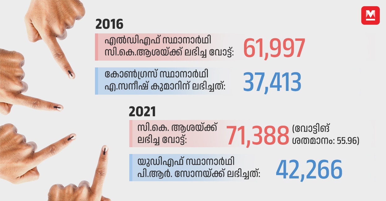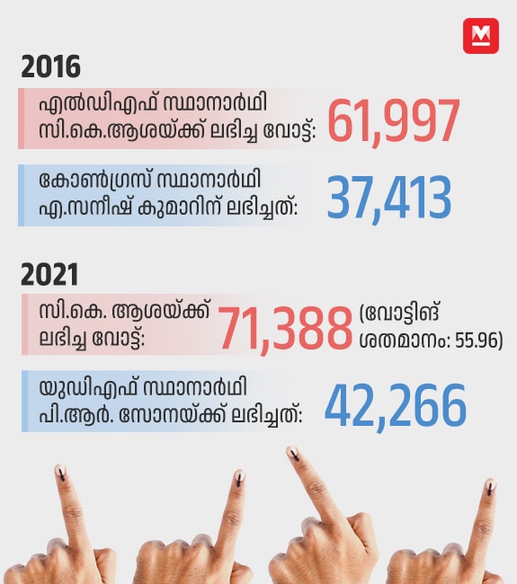 തുടർച്ചയായി ഇടതുപക്ഷം ജയിക്കുന്ന വൈക്കം മണ്ഡലത്തിൽ ദലിത് പിന്നാക്ക വോട്ടുകൾ ഉറപ്പാക്കുക എന്ന ലക്ഷ്യത്തോടെയാണ് യുഡിഎഫ് സണ്ണി എം. കപിക്കാടിനെ മത്സരിപ്പിക്കാൻ ആലോചിക്കുന്നത്. 1991നു ശേഷം യുഡിഎഫ് ഇതുവരെ വൈക്കം മണ്ഡലത്തിൽ വിജയിച്ചിട്ടില്ല. സിപിഐ നേതാവ് സി.കെ. ആശയാണ് സിറ്റിങ് എംഎൽഎ. തുടർച്ചയായി രണ്ട് തവണയാണ് സിപിഐയുടെ പ്രതിനിധിയായി സി.കെ. ആശ വൈക്കത്ത് നിന്നും നിയമസഭയിലെത്തിയത്. ADVERTISEMENT Go AD-FREE