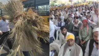 किसान सम्मेलन में गेहूं की बालियां लेकर पहुंचे किसान