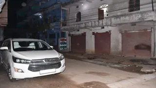 चास में सोनू मिश्रा के घर के बाहर खड़ी आइटी विभाग की छापामारी टीम की गाड़ी।