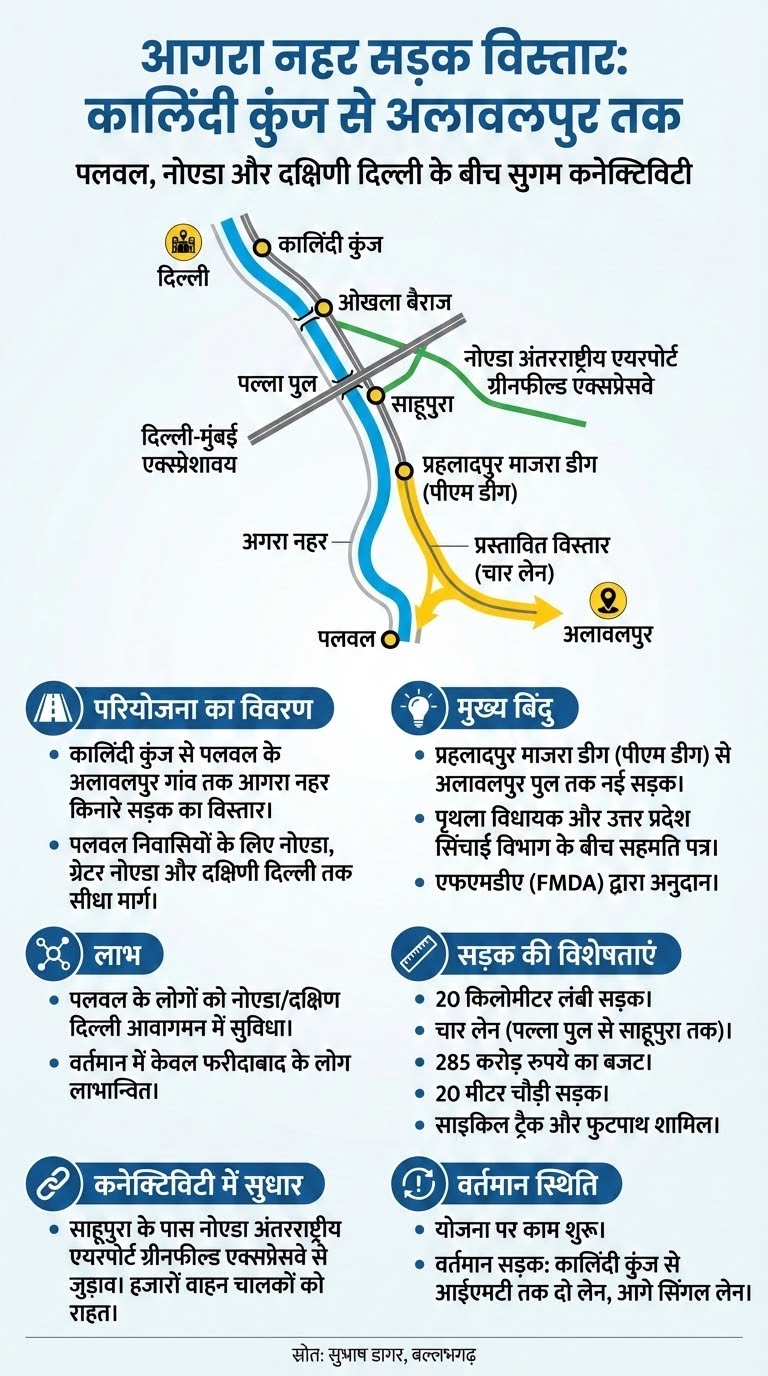 पलवल की दिल्ली-नोएडा से होगी कनेक्टिविटी, आगरा नहर के साथ लगते सड़क मार्ग का अलावलपुर तक होगा विस्तार