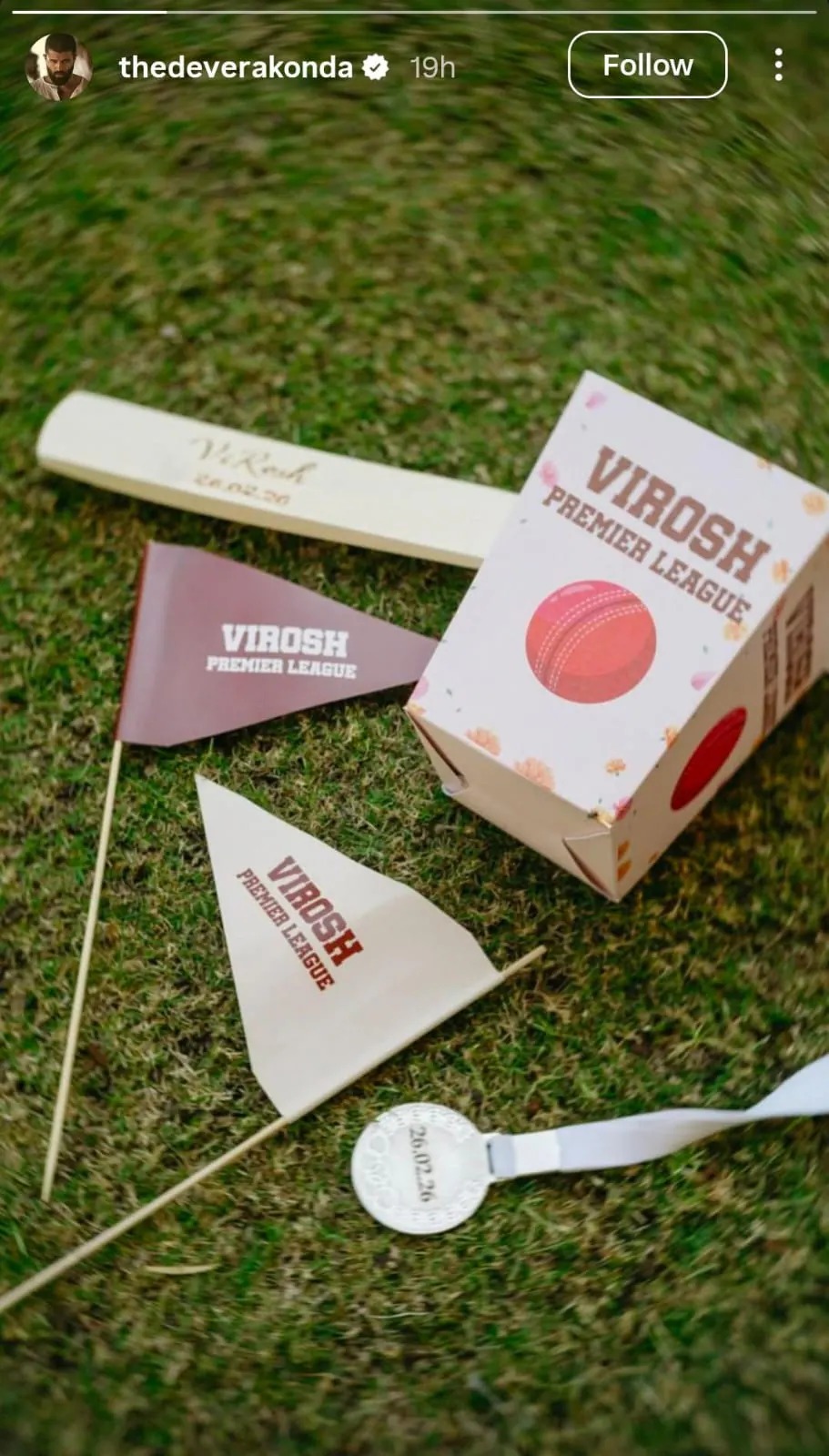 पारंपरिक शादी की रस्मों से हटकर, विजय और रश्मिका ने अपनी शादी के सप्ताह को मस्ती और खुशनुमा पलों से भर दिया है। हाल ही में एक इंस्टाग्राम स्टोरी में, उन्होंने अपने क्रिकेट टूर्नामेंट, \“विरोष प्रीमियर लीग\“ (Virosh Premier League) का खुलासा किया, जिसे विशेष रूप से दोस्तों और परिवार के लिए आयोजित किया गया है। इसके अलावा बैट पर पर्सनलाइज्ड नाम और वेडिंग डेट छपी हुई है और वेडिंग से जुड़ी हर छोटी-छोटी डिटेल्स का बड़े करीने से ध्यान रखा गया है। इससे पहले विजय ने वॉलीबॉल नेट का एक धुंधला सा फोटो शेयर किया था।