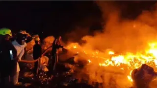 उधमसिंह नगर में धूं-धूं कर जला कबाड़ का गोदाम, आग बुझाते वक्त एक फायर कर्मी झुलसा
