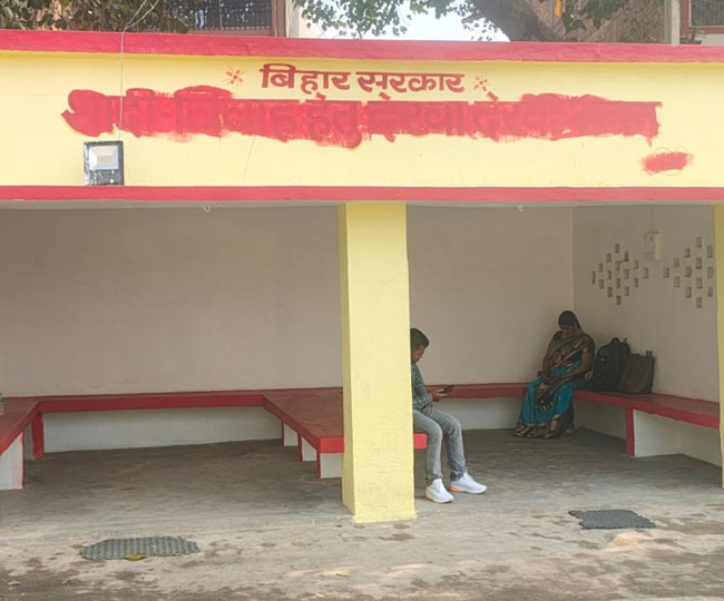जमुई में है ‘शादी-विवाह हेतु देखा-देखी भवन, वायरल होने पर यात्री शेड पहुंचे बीडीओ, कहा- लाल रंग से जल्‍दी म‍िटा दो