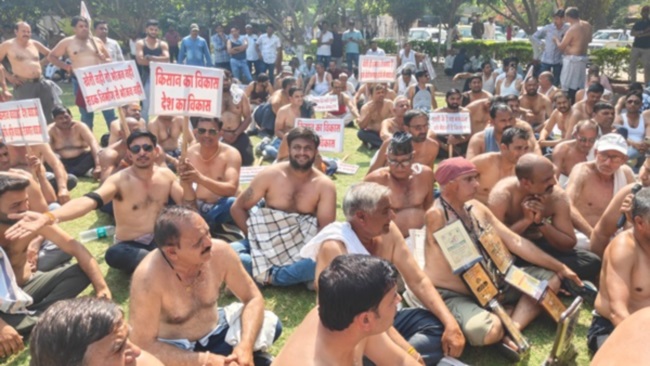 डिजिटल डेस्क, इंदौर। पूर्वी रिंग रोड परियोजना और इंदौर–मनमाड़ रेल लाइन के विरोध में प्रभावित किसानों ने बुधवार को कलेक्टर कार्यालय के बाहर अनोखा और उग्र प्रदर्शन किया। किसानों ने अर्धनग्न होकर विरोध जताया। तेज गर्मी के बीच एक बुजुर्ग किसान को घबराहट हुई और वे वहीं जमीन पर लेट गए।