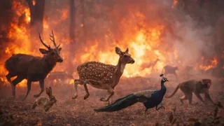 Forest Fire Summer: जंगल में लगी आग से वन्यजीवों और पर्यावरण पर खतरा बढ़ गया है। यह तस्वीर एआई की मदद से तैयार की गई है।