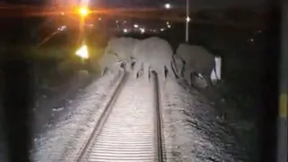 मंगलवार रात हाथियों का झुंड योगनगरी रेलवे स्टेशन के नये रेलवे ट्रैक पर चढ़ गया।
