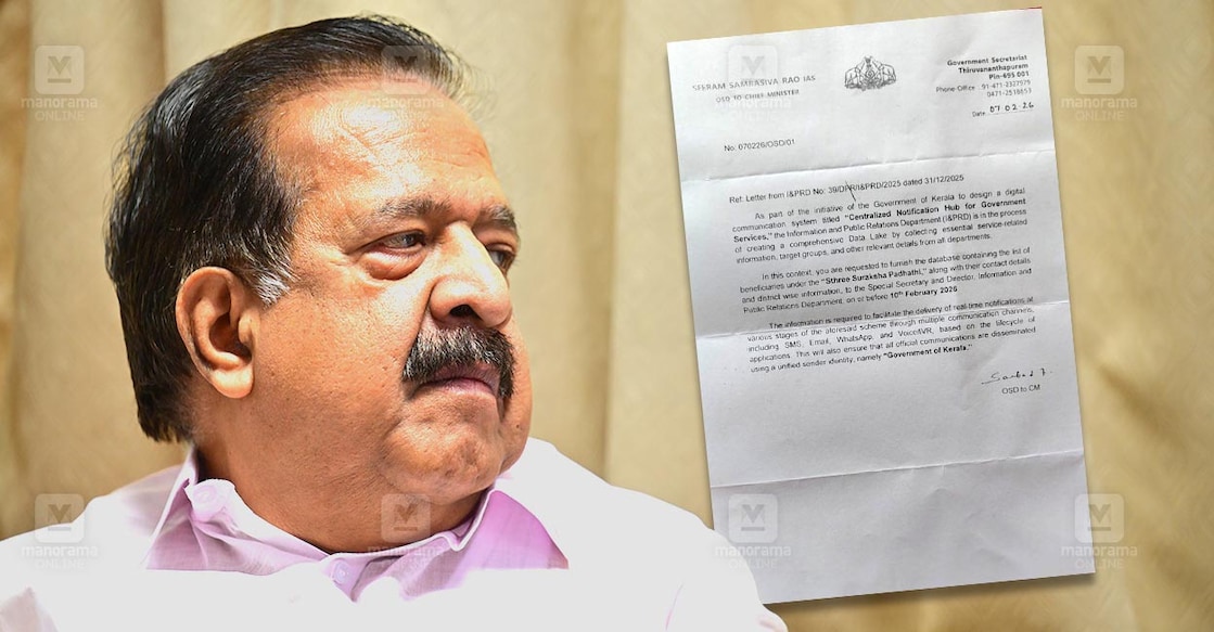 കൊച്ചി∙ സര്‍ക്കാര്‍ ജീവനക്കാരുടെയും പെന്‍ഷന്‍കാരുടെയും വ്യക്തിവിവരങ്ങള്‍ തിരഞ്ഞെടുപ്പ് പ്രചാരണത്തിനായി ചോര്‍ത്തിയതിനു പിന്നാലെ സ്ത്രീസുരക്ഷാ പദ്ധതിയില്‍ പേര് ചേര്‍ത്തവരുടെയും വ്യക്തിവിവരങ്ങളും സര്‍ക്കാർ ചോര്‍ത്തിയിരിക്കുകയാണെന്നു കോൺഗ്രസ് നേതാവ് രമേശ് ചെന്നിത്തല. ലക്ഷക്കണക്കിന് സാധാരണക്കാരായ സ്ത്രീകളുടെ വ്യക്തിവിവരങ്ങളാണ് സര്‍ക്കാര്‍ ചോര്‍ത്തിയത്. ഇതിനു പിന്നിൽ പ്രവര്‍ത്തിച്ചത് മുഖ്യമന്ത്രിയുടെ ഓഫിസാണെന്നും ചെന്നിത്തല ആരോപിച്ചു.