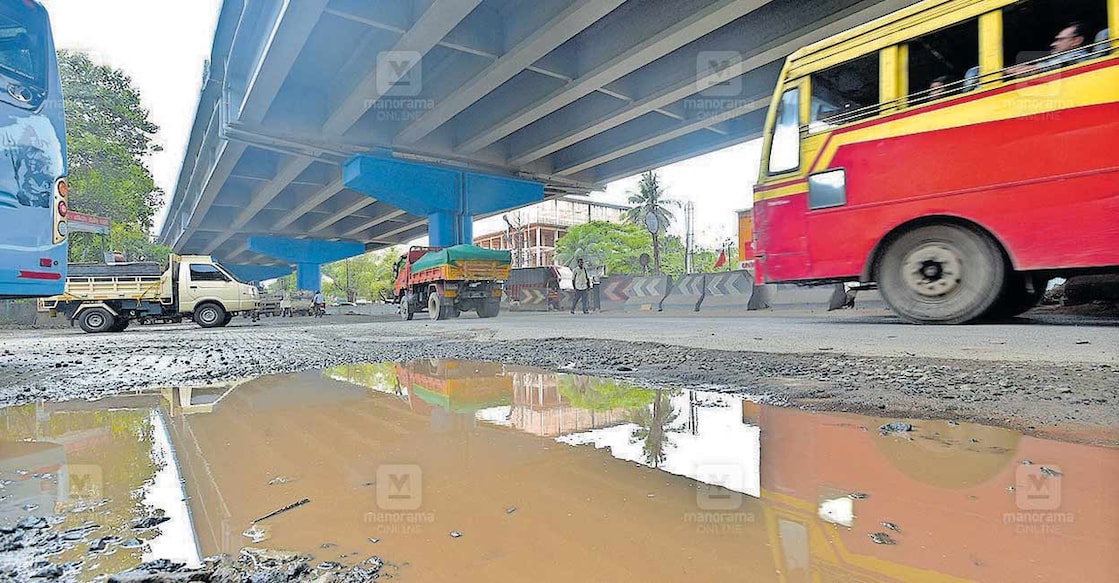റോഡു പണി പൂർത്തിയാകാത്തതാണു വെള്ളക്കെട്ടിനു കാരണം. സർവീസ് റോഡിന്റെ ഒരു വശത്ത് ആറുവരിപ്പാതയുടെ ഭിത്തിയും മറുവശത്ത് ഓടയുമാണ്. പലയിടത്തും ഓട സർവീസ് റോഡിനെക്കാൾ ഉയർന്നു നിൽക്കുകയാണ്. ഓടയിലേക്കു ദ്വാരങ്ങളും കുറവാണ്. അതിനാൽ തന്നെ വെള്ളം ഒഴുകി മാറാൻ സമയമെടുക്കും. ഇരുചക്രവാഹനങ്ങളാണ് ഈ വെള്ളക്കെട്ടിൽ വലയുന്നത്. വെള്ളക്കെട്ടിലെ കുഴികളിൽ വാഹനം ചാടുന്നതോടെ നിയന്ത്രണം വിടുന്ന സ്ഥിതിയുമുണ്ട്.