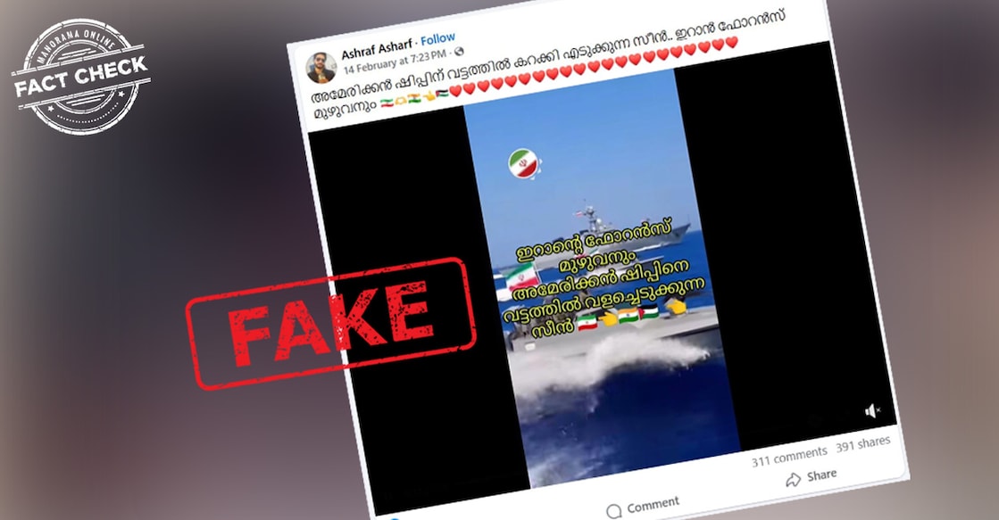 അമേരിക്കൻ ഷിപ്പിന് വട്ടത്തിൽ കറക്കി എടുക്കുന്ന സീൻ.. ഇറാൻ ഫോറൻസ് മുഴുവനും എന്ന കുറിപ്പിനൊപ്പമാണ് പോസ്റ്റ് പ്രചരിക്കുന്നത്. ഒരു കപ്പലിന് അടുത്ത് കൂടി പായുന്ന ഇറാൻ പതാകകൾ വച്ച ബോട്ടുകൾ വിഡിയോയിലുള്ളത്.