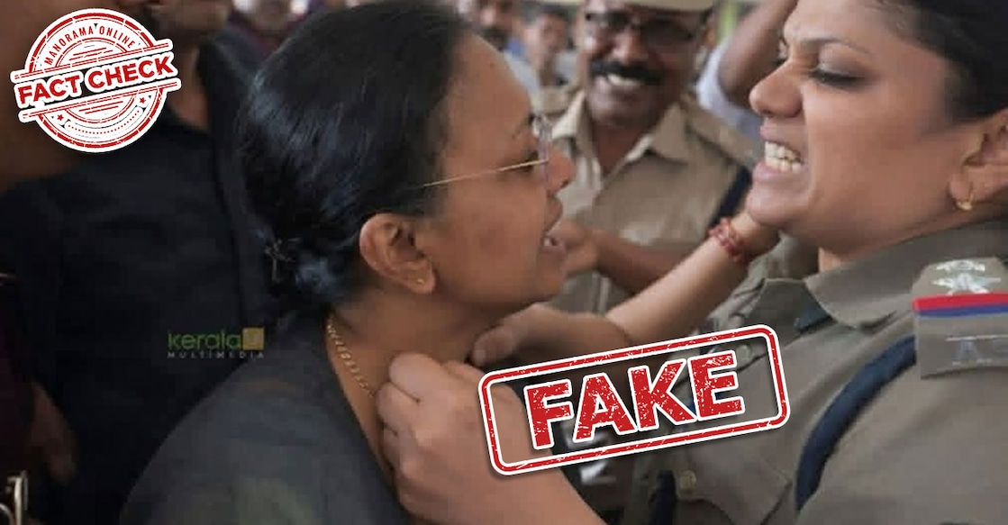 വീണ ജോർജിന്റെ കഴുത്തിൽ പിടിക്കുന്ന വനിതാ പൊലീസിന്റെ ചിത്രം വ്യാജം | Fact Check