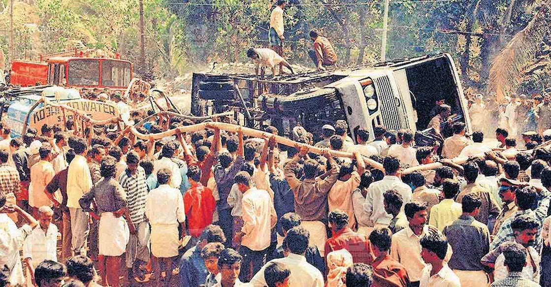 ശ്വാസം വിടാതെ മുന്നോട്ടോടി തിരിഞ്ഞുനോക്കുമ്പോൾ ബസ് ഒരു തീഗോളമായി മാറുന്നതാണ് രാജേഷ് കാണുന്നത്. സഹയാത്രികരെല്ലാം നിന്ന നിൽപിൽ കത്തിയമരുന്നു. രക്ഷപ്പെട്ടത് പത്തിൽ താഴെ ആളുകൾ മാത്രം. കോട്ടയ്ക്കൽ ആര്യവൈദ്യശാലയിൽ ജോലി ലഭിച്ചശേഷം ഇതുവഴി പതിവായി പോകുമ്പോഴെല്ലാം കാലിന്റെ അടിയിൽനിന്നൊരു തരിപ്പ് കയറിവരുന്നതായി തോന്നുമെന്ന് രാജേഷ് പറയുന്നു. അപകടത്തെത്തുടർന്ന് ഡ്രൈവർ സുധീറിന്റെ ശിക്ഷാകാലയളവ് ഹൈക്കോടതി ഉയർത്തിയത് ഈയിടെയാണ്. English Summary: