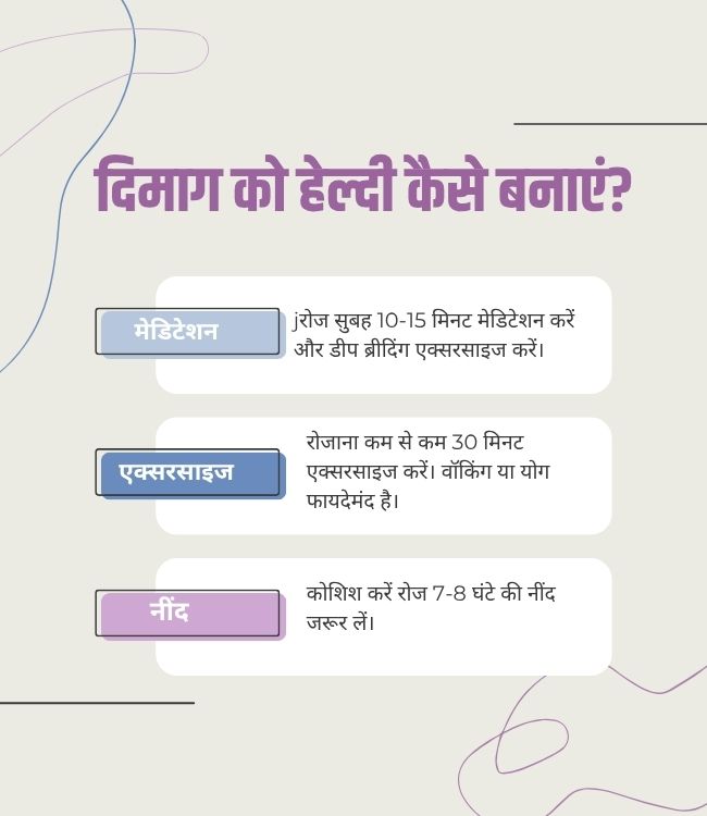 फिजिकल एक्टिविटी केवल शरीर के लिए ही नहीं, बल्कि दिमाग के लिए भी उतनी ही जरूरी है। सुबह की ताजी हवा में मॉर्निंग वॉक, हल्का योग या स्ट्रेचिंग करें। कम से कम 20-30 मिनट की हल्की एक्सरसाइ भी काफी असरदार होती है। इससे दिमाग का ब्लड सर्कुलेशन बेहतर होता है और हैप्पी हॉर्मोन्स रिलीज होते हैं, जो आपके मूड को अच्छा रखते हैं और डिप्रेशन व एंग्जायटी को कम करने में मदद करते हैं।