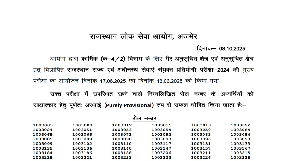 एजुकेशन डेस्क, नई दिल्ली: राजस्थान लोक सेवा आयोग (RPSC) की ओर से आरपीएससी आरएएस मुख्य परीक्षा 2025 का रिजल्ट जारी कर दिया गया है। जो उम्मीदवार RPSC RAS Mains परीक्षा में शामिल हुए थे और रिजल्ट का बेसब्री से इंतजार कर रहे थे, अब वे आरपीएससी की आधिकारिक वेबसाइट पर जाकर अपना रिजल्ट देख और डाउनलोड कर सकते हैं। बता दें, आरपीएससी की ओर से मुख्य परीक्षा का रिजल्ट पीडीएफ फॉर्मेट में जारी किया गया है। इसके साथ ही इस भर्ती प्रक्रिया के माध्यम से कुल 1096 उम्मीदावरों की नियुक्ति की जाएगी। विज्ञापन हटाएं सिर्फ खबर पढ़ें