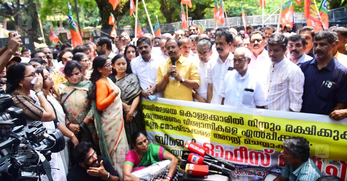കൊച്ചി∙ ശബരിമല സ്വർണക്കൊള്ളയിലെ വിവാദനായകൻ ഉണ്ണിക്കൃഷ്ണൻ പോറ്റി മുൻ ദേവസ്വം മന്ത്രി കടകംപള്ളി സുരേന്ദ്രന്റെ റിയൽ എസ്റ്റേറ്റ് ബെനാമിയെന്ന് ബിജെപി നേതാവ് വി.മുരളീധരൻ. അതിനാലാണ് കടകംപള്ളി തലയിൽ മുണ്ടിട്ട് നടക്കുന്നത്. അയ്യപ്പന്റെ സ്വർണം മോഷണം പോയിട്ട് നിയമസഭയിലോ വാർത്താസമ്മേളനം വിളിച്ചോ വിശദീകരിക്കാൻ തയാറാകാത്ത മുഖ്യമന്ത്രിയുടെ നടപടി ഭൂരിപക്ഷ സമുദായത്തോടുള്ള അവഹേളനമാണെന്നും എറണാകുളത്ത് താലൂക്ക് ഓഫിസ് മാർച്ച് ഉദ്ഘാടനം ചെയ്ത് വി.മുരളീധരൻ പറഞ്ഞു.