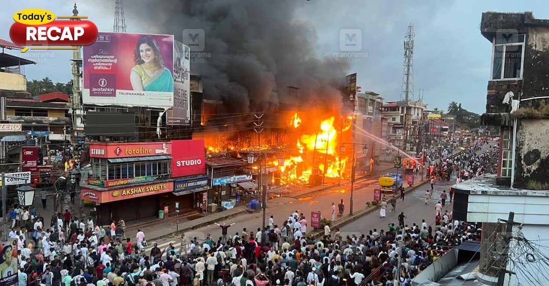 കണ്ണൂരിലെ തളിപ്പറമ്പിൽ വ്യാപാര സമുച്ചയത്തിൽ ഉണ്ടായ തീപിടിത്തമാണ് ഇന്നത്തെ പ്രധാന വാർത്ത. സാഹിത്യ നൊബേൽ പുരസ്കാര പ്രഖ്യാപനവും ചിത്തരഞ്ജൻ എംഎൽഐ സഭയിൽ നടത്തിയ പരാമർശവും നിയമസഭയിൽ പ്രതിപക്ഷ ബഹളത്തെ തുടർന്ന് മൂന്ന് എംഎൽഐമാരെ സ്പീക്കർ സസ്പെൻഡ് ചെയ്തതും ഗാസ സമാധാന കരാറിനെ ഇന്ത്യ സ്വാഗതം ചെയ്തതും കണ്ണൂരിൽ നടുറോഡിലെ സ്ഫോടനവും ഇന്നത്തെ പ്രധാന വാർത്തകളായി.