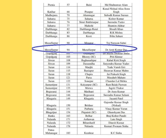 अब वे मुजफ्फरपुर नगर विधानसभा सीट से निर्दलीय चुनाव लड़ेंगे। इसकी घोषणा उन्होंने गुरुवार को अपने आवास पर प्रेस वार्ता कर दी। उन्होंने बताया कि करीब ढ़ाई साल में पार्टी के लिए बहुत कुछ किया, लेकिन उनकी मेहनत का परिणाम किसी और को दे दिया गया।