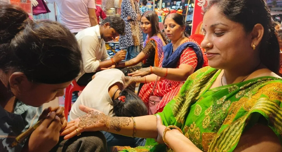 करवाचौथ को लेकर गोलघर में मेंहदी रचाती महिलाएं। जागरण