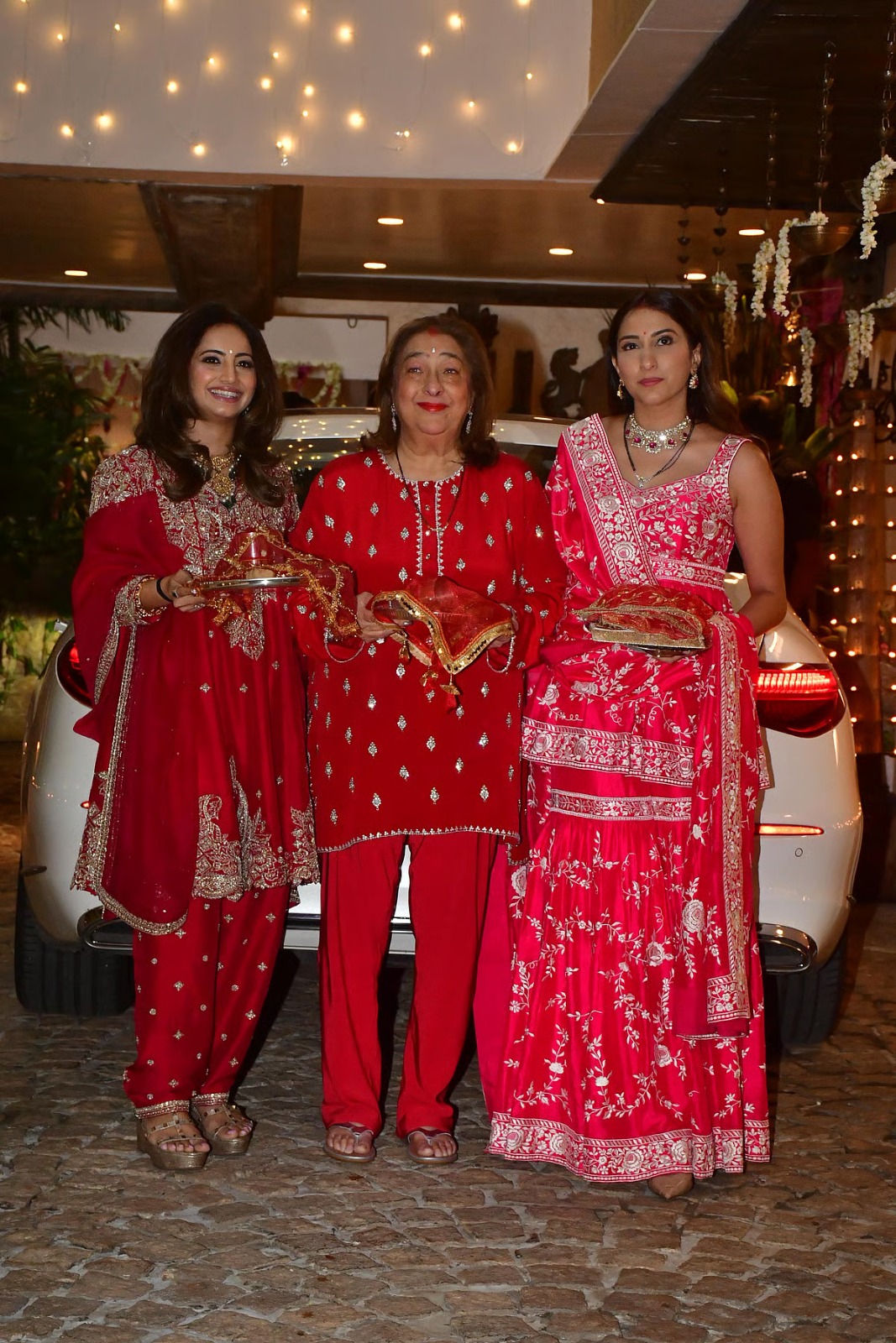 रीमा जैन, अलेखा आडवाणी और कपूर परिवार के अन्य सदस्यों के साथ, रेड कलर के सूड में पहुंचीं। अपने पहले करवाचौथ के लिए आलेखा काफी एक्साइटेड दिखीं और पैप्स के लिए मुस्कुराते हुए पोज किया।