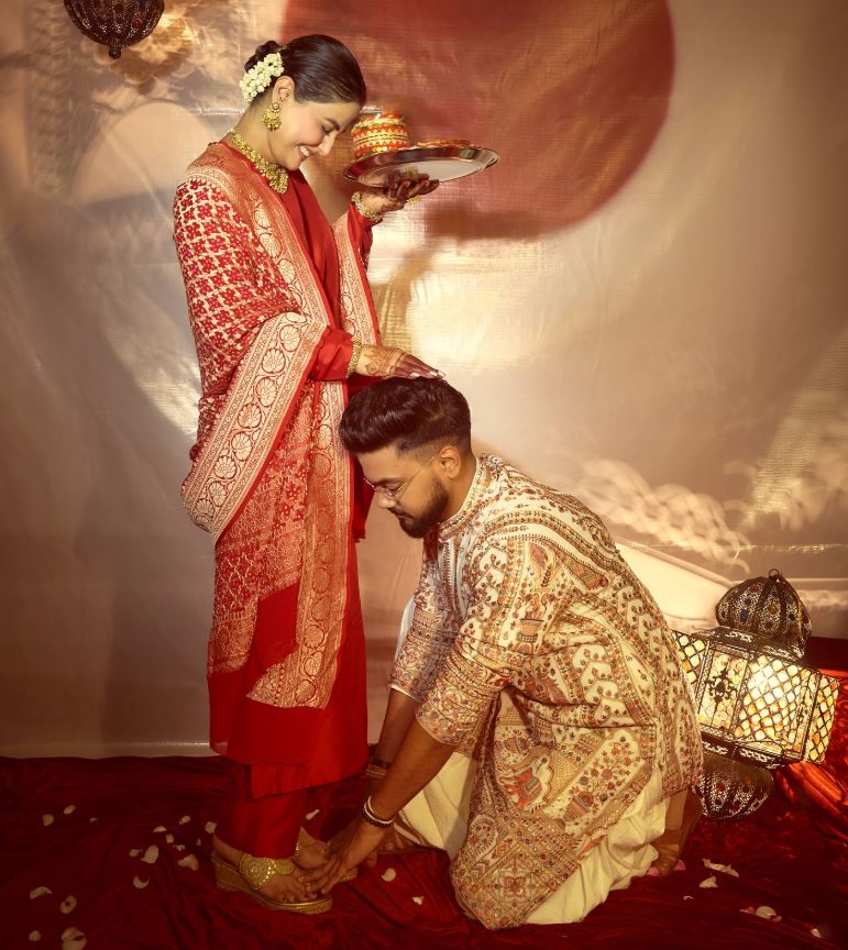 तस्वीरों में हिना खान नई-नवेली दुल्हन की तरह सजी हुई बहुत खूबसूरत लग रही थीं। पहली तस्वीर में वह अपने पति को छलनी से देखती दिखीं। वहीं, दूसरी फोटो में रॉकी, हिना का पैर छूते नजर आए। बाकी तस्वीरों में कपल ने एक-दूसरे के साथ रोमांटिक पोज दिया। दोनों ही एक-दूजे के प्यार में डूबे हुए दिखाई दिए।