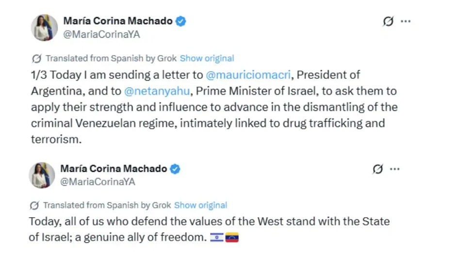2 साल पहले अपनी एक पोस्ट में मारिया ने लिखा था कि “वेनेजुएला का संघर्ष भी इजरायल की तरह है।“ मारिया ने यहां तक कहा था कि अगर वो सत्ता में आईं तो इजरायल की आजादी में पूरी मदद करेंगी।
