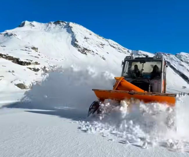 रोहतांग पास पर सड़क बहाली में जुटा बीआरओ।