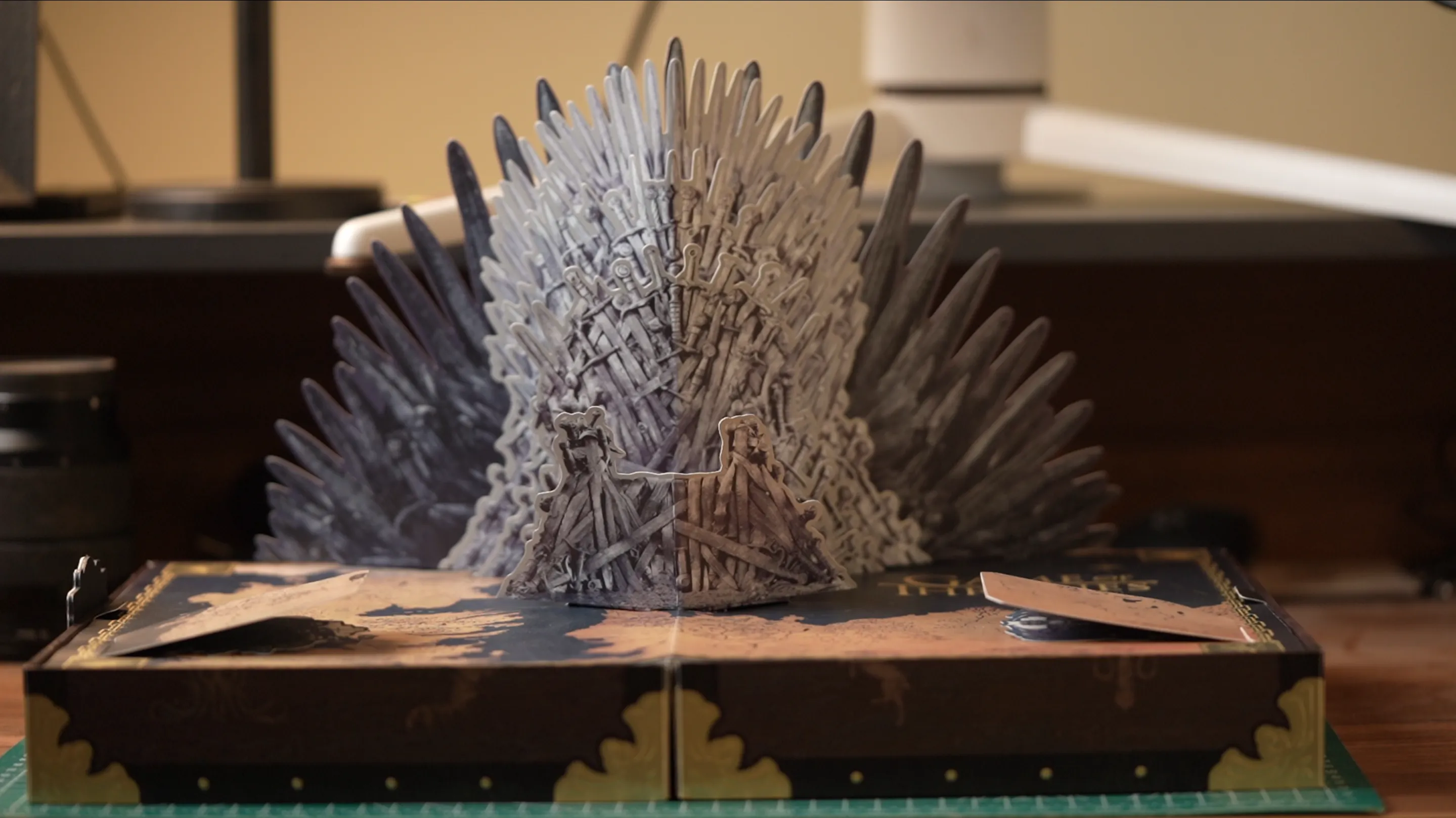 Upon opening, the experience diverges further from the norm. The interior utilises a pop-up book mechanism to reveal a miniature 3D model of the Iron Throne, which functions as a dramatic display stand for the phone itself. This entire assembly is set against a printed map of Westeros. This theatrical presentation, which also includes introductions to House Stark and House Targaryen, is designed for immersion and display, contrasting sharply with the utilitarian foam or cardboard inserts of a standard edition.