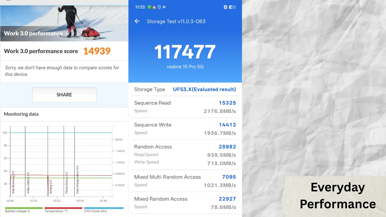 This means that while peak performance may be lower, the Realme 15 Pro sustains its capabilities more consistently during prolonged usage, i.e., an important metric for gamers and power users.