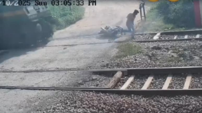 Tushar, who was reportedly trying to cross the tracks when the railway crossing was shut, then tried to pick up his bike. Seconds later, he realised that the train was approaching and tried to run but was hit by the train.