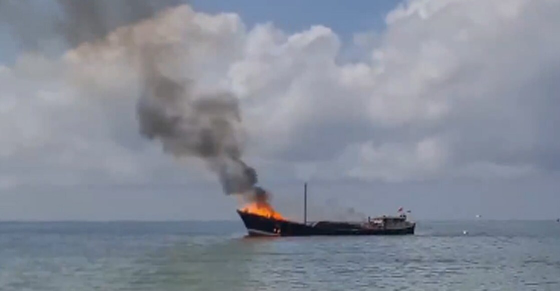The ship, which belongs to Jamnagar-based HRM & Sons, loaded with rice and sugar, caught fire, and three fire brigade vehicles arrived at the scene. The ship was towed to the middle of the sea as the… pic.twitter.com/30qIN02cv7— ANI (@ANI) September 22, 2025