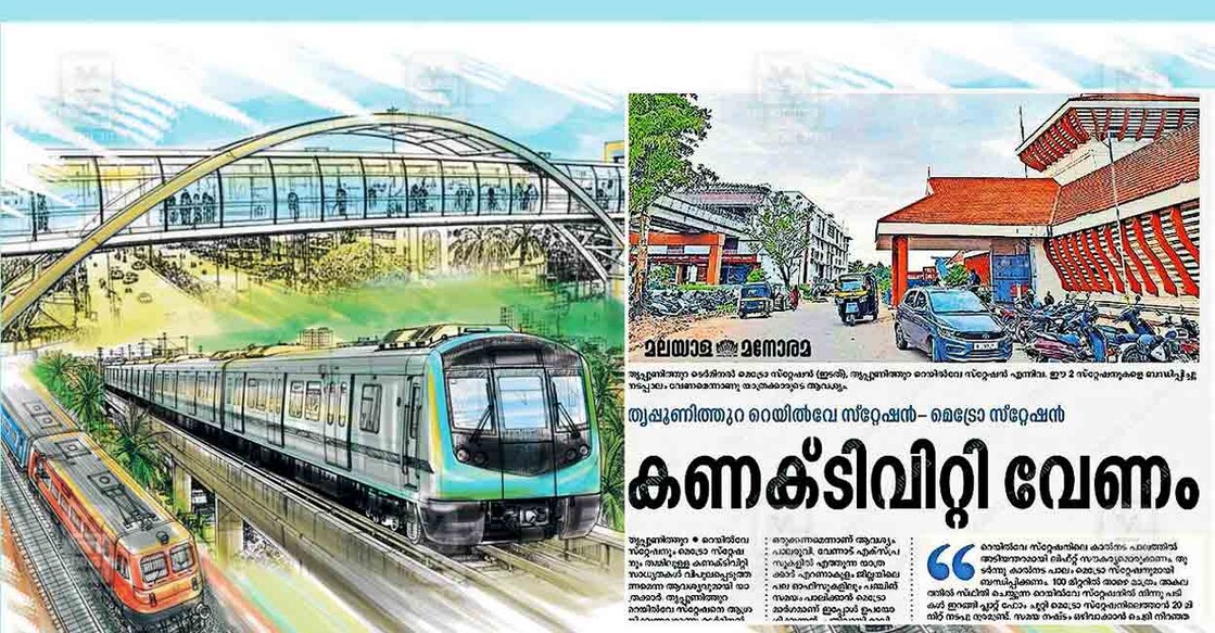 തൃപ്പൂണിത്തുറ മെട്രോ സ്റ്റേഷനിൽ നിന്ന് റെയിൽവേ ബന്ധിപ്പിച്ച് ആകാശപ്പാത; 3 കോടി രൂപ ചെലവ് വരുന്ന പദ്ധതി